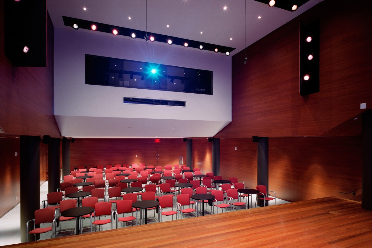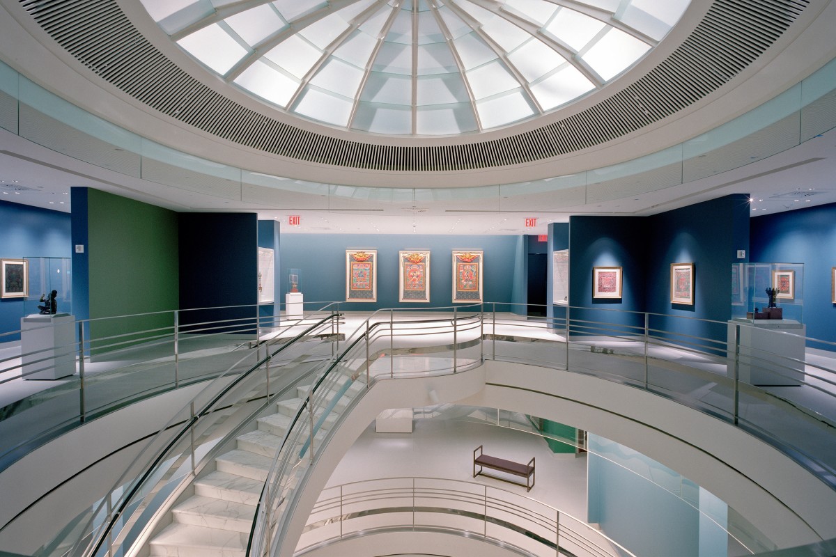 The 21st-century home of the Rubin Museum began its life as six tenement buildings that BBB renovated into a Barney's Women's Store in 1986. When Barney's vacated, BBB was re-engaged to collaborate with the Museum and a team of specialists in a major planning effort to adapt the commercial space for the display of a unique collection of art. To create the sense of intimacy that is required to appreciate the art, the galleries are isolated by surrounding wall panels. Inspired by Tibetan designs, the wall system surrounding the main stair provides key additional display space on two sides and low walls for long axial views across the gallery floors. The Tibetan motif is echoed overhead with a mandala-shaped, luminous fabric ceiling at each floor where the circular stair opening provides the center point of the square. BBB's scope of work also included building-wide security, museum-quality environmental controls, multi-use theater design, sophisticated lighting controls, café and museum store design, and the acoustic treatment of spaces.