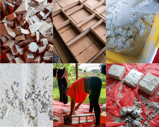 The first series of experiments tested composition of concrete used in sidewalks. Concrete is the predominant material used in sidewalk design even though it is expensive to maintain, functions poorly, and lacks aesthetic qualities. With the intention to explore material alternatives and reduce cement quantities used, these two tests combined cement with different ratios of recycled rubber and aggregate to asses structural capacity, beauty and walk-ability.