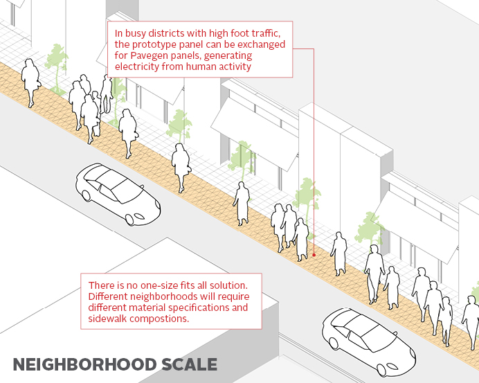 Drawings below illustrate one possible sidewalk prototype informed by the lessons learned in the material testing and exchange stages.