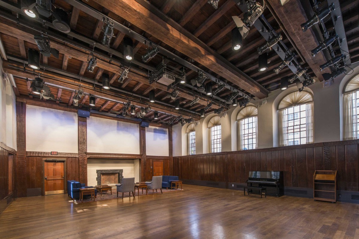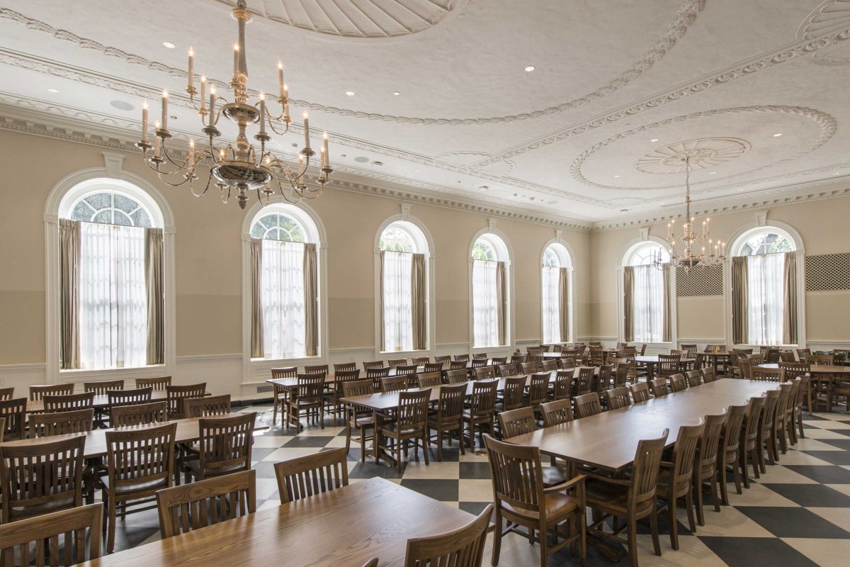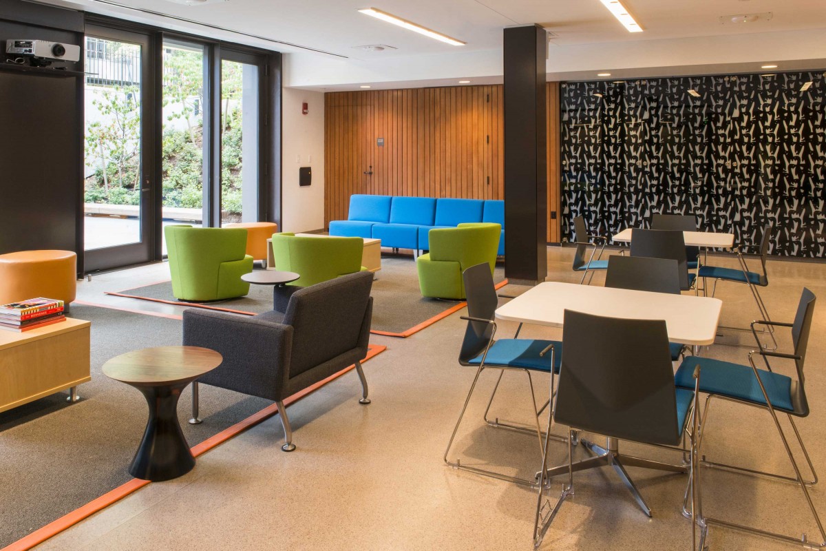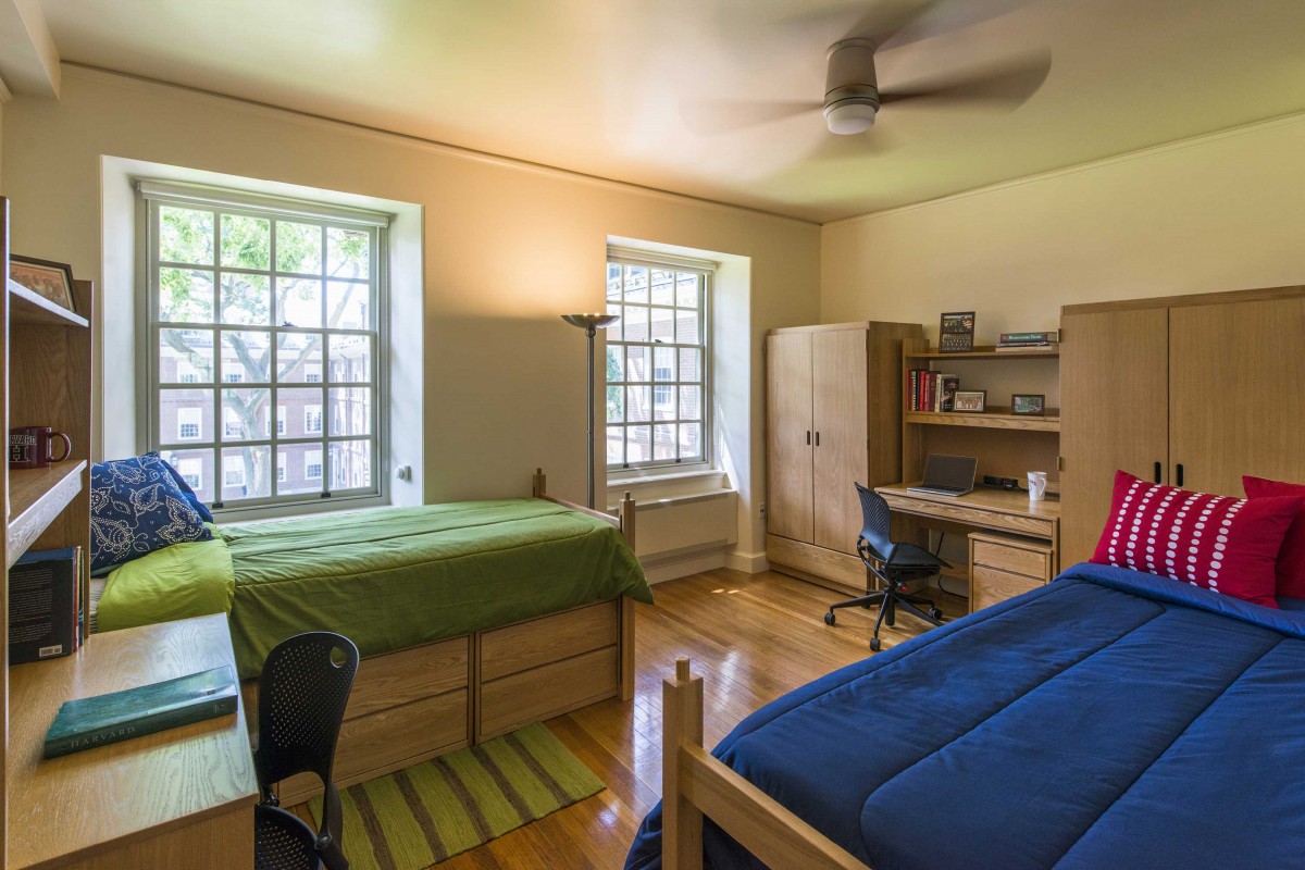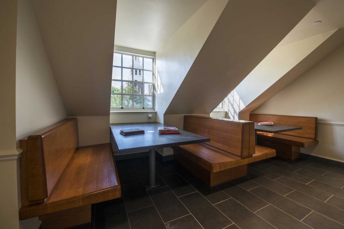 BBB provided design services — including space planning, selections of finishes and furniture, and feature artwork — for student bedrooms, classrooms, and common spaces at existing House buildings that were renovated by Kieran Timberlake, including Quincy House's Stone Hall, Leverett House's McKinlock Hall, and Dunster House. The priorities of BBB's interiors work for the House Renewal Program include creating contextual interiors, furnishings, and lighting as well as graphics and artwork that showcase the character-defining features of each House.