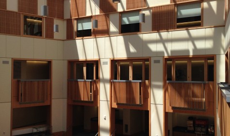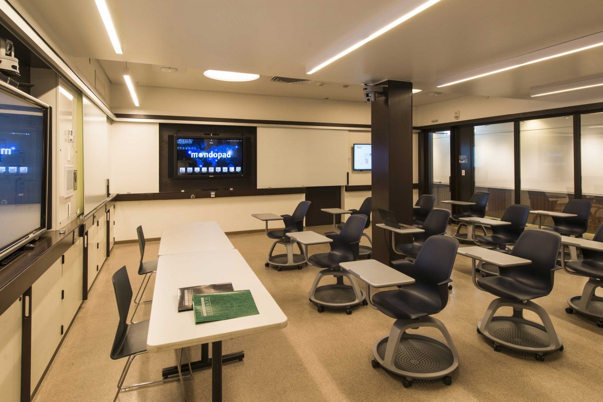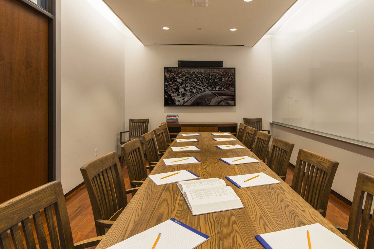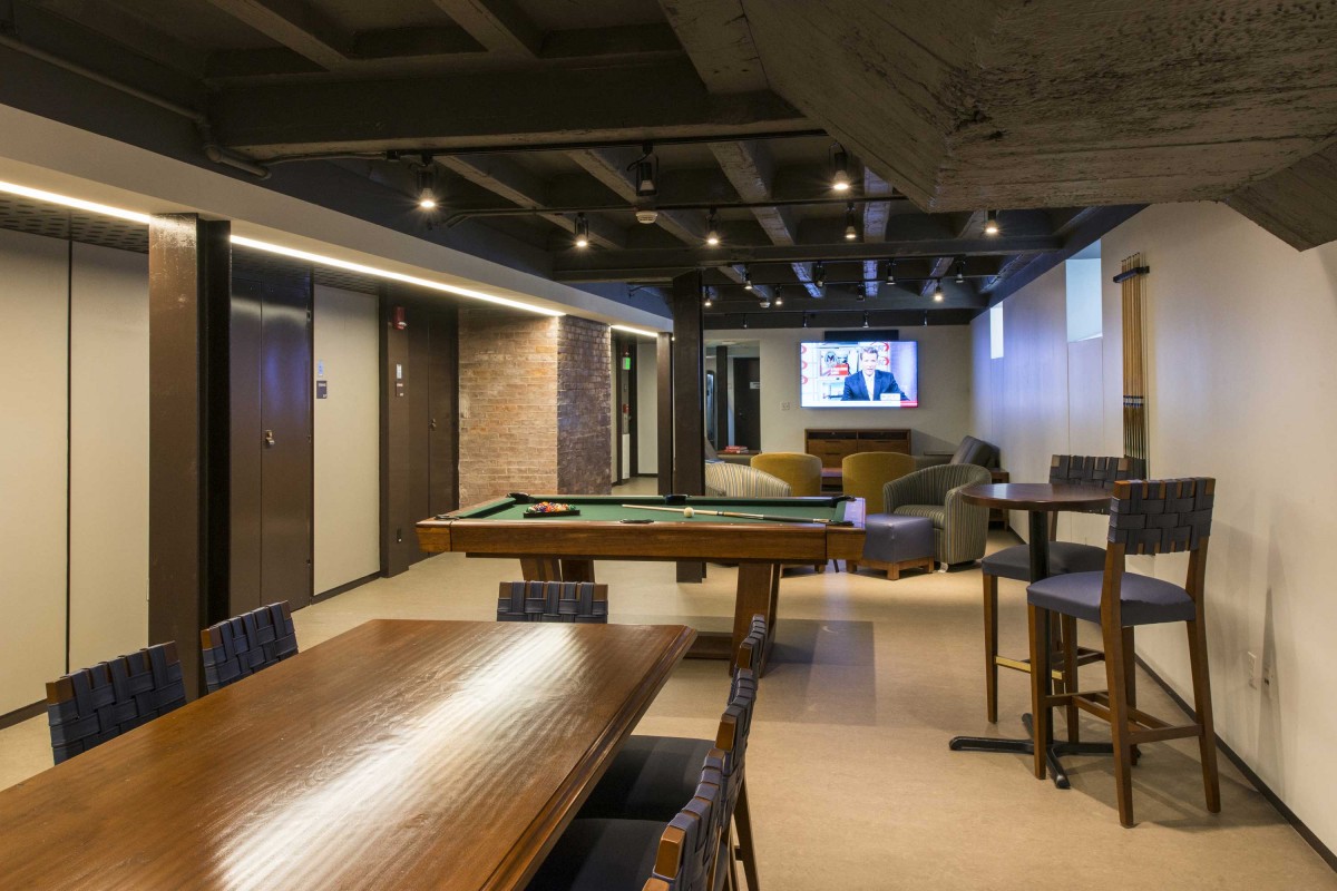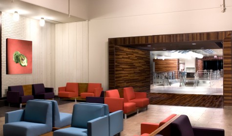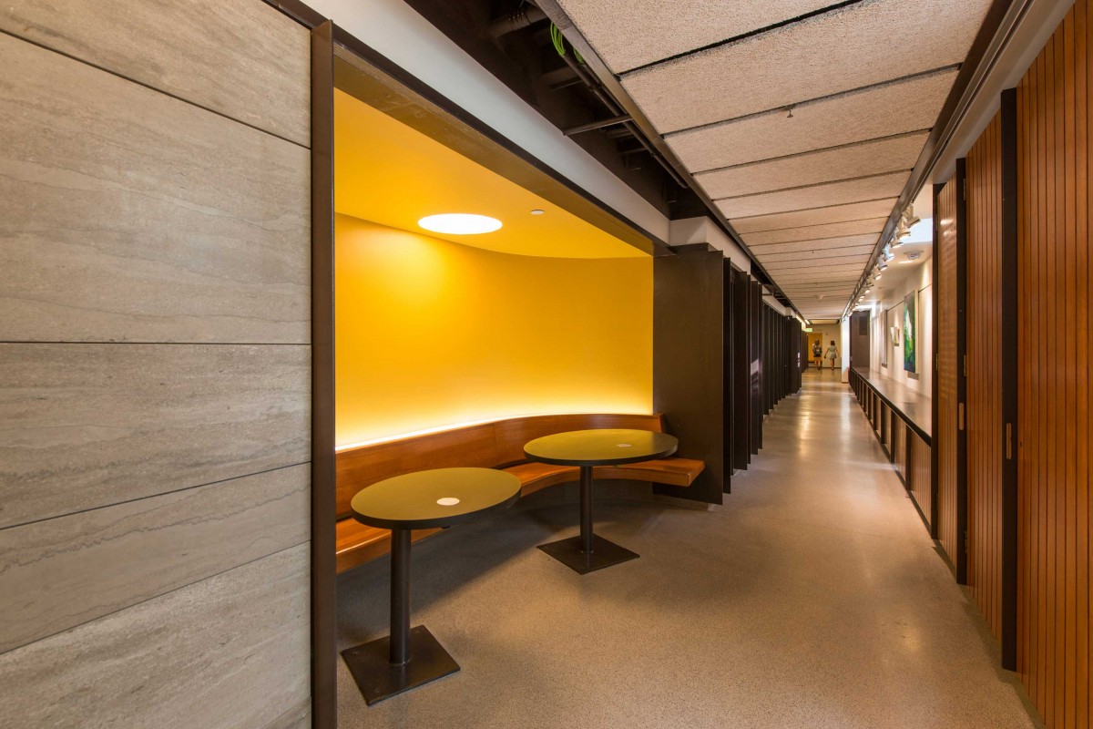 BBB provided design services — including space planning, selections of finishes and furniture, and feature artwork — for student bedrooms, classrooms, and common spaces at existing House buildings that were renovated by Kieran Timberlake, including Quincy House's Stone Hall, Leverett House's McKinlock Hall, and Dunster House. The priorities of BBB's interiors work for the House Renewal Program include creating contextual interiors, furnishings, and lighting as well as graphics and artwork that showcase the character-defining features of each House.