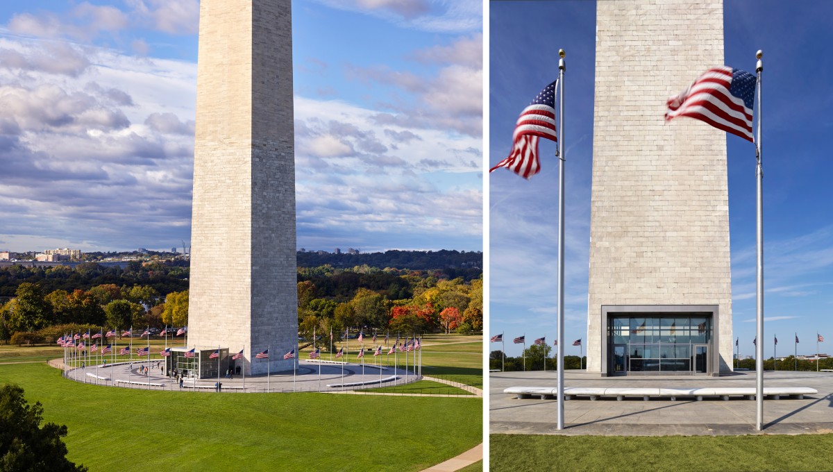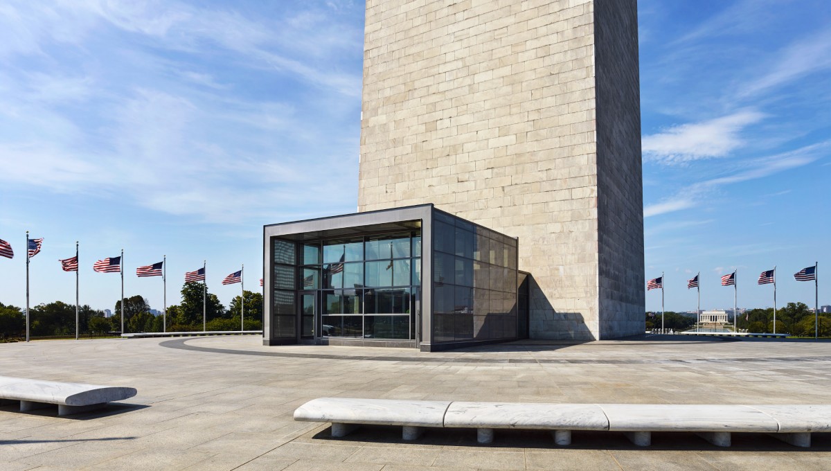 A modern visitor facility at the Washington Monument enhances the visitor experience and security while maintaining the historic integrity of this iconic landmark at the center of the National Mall.
