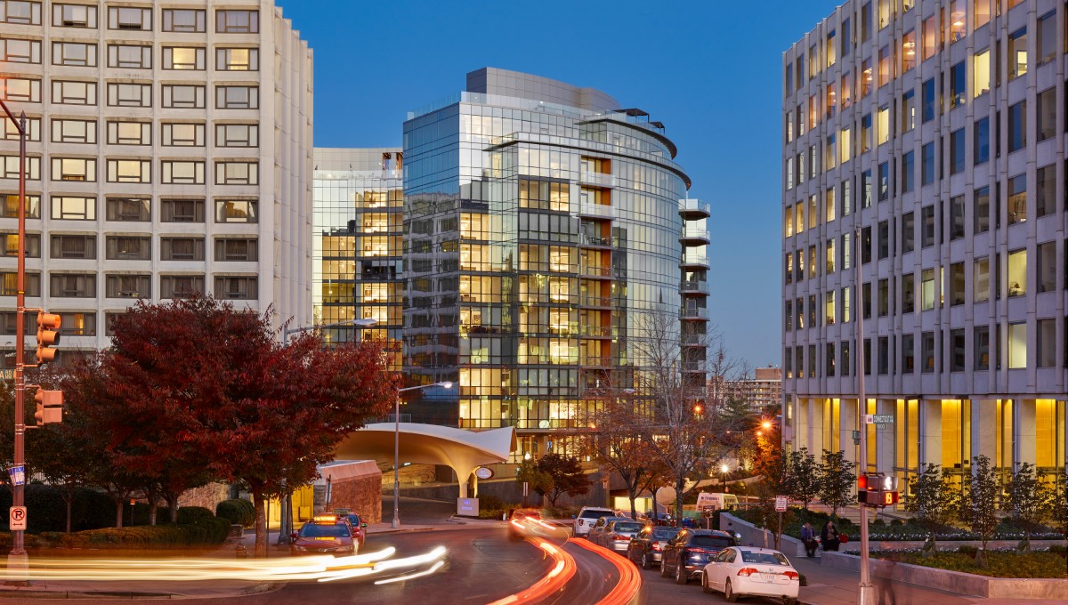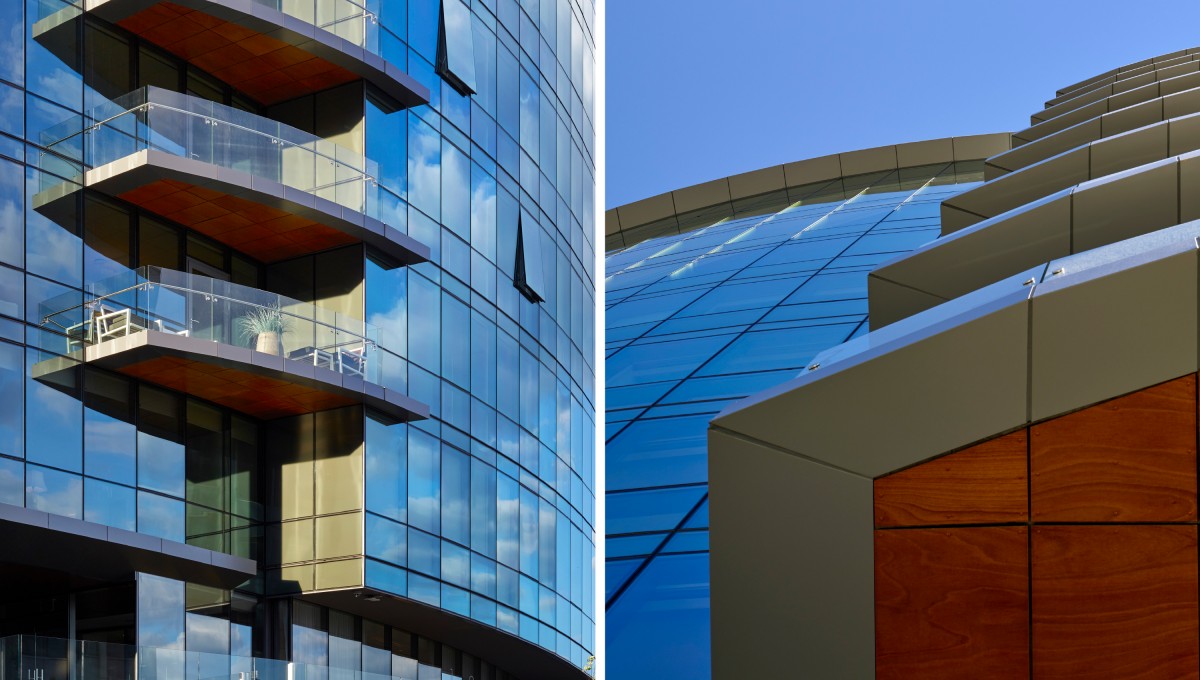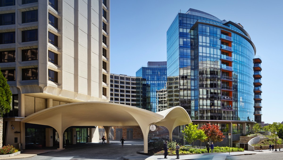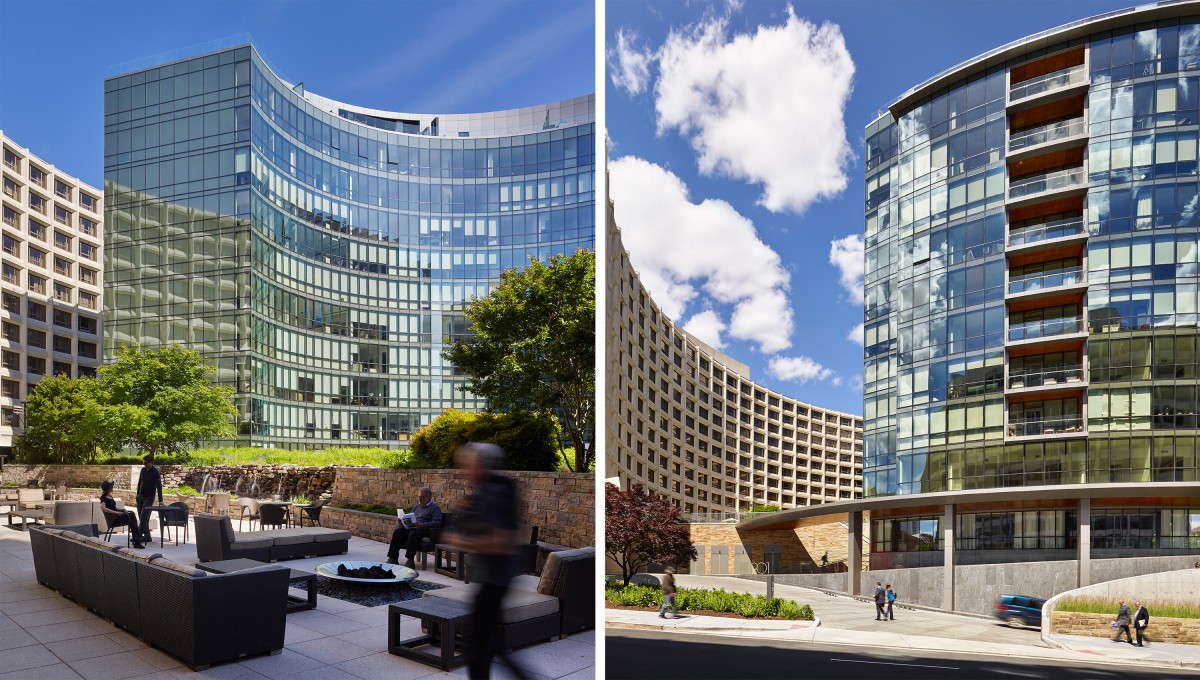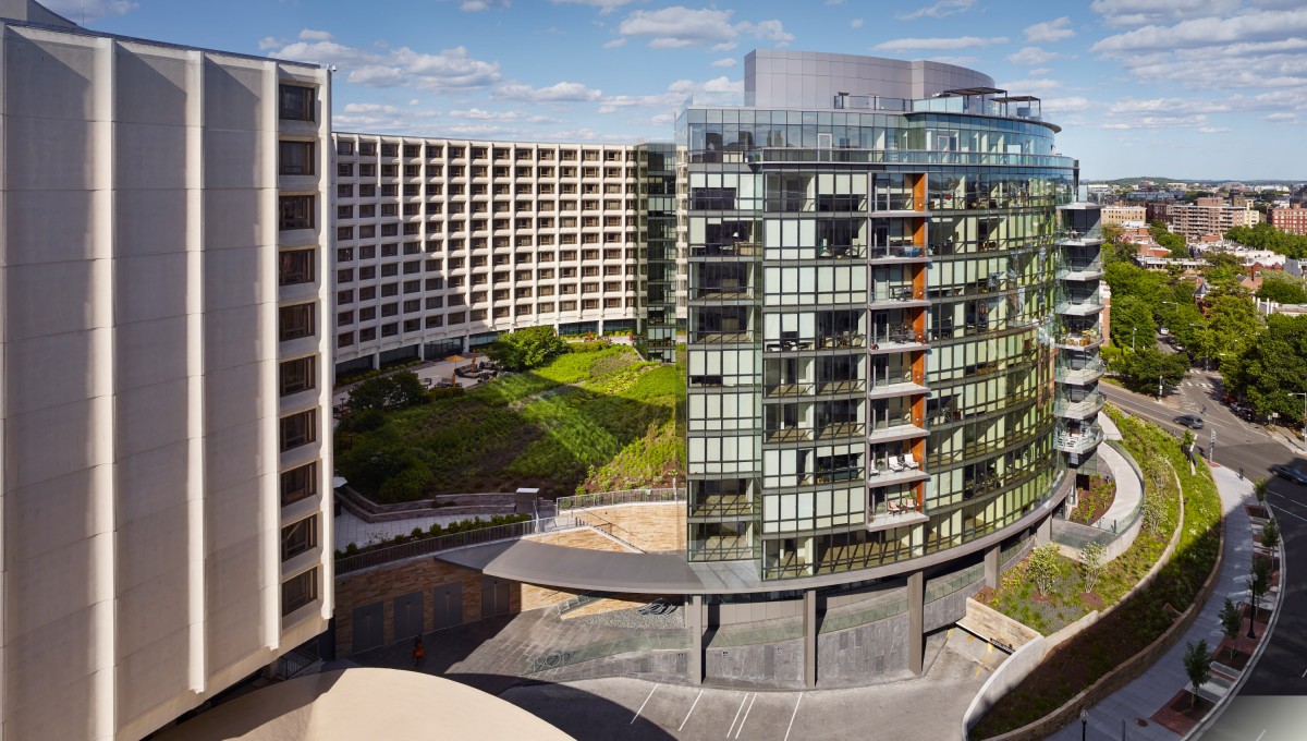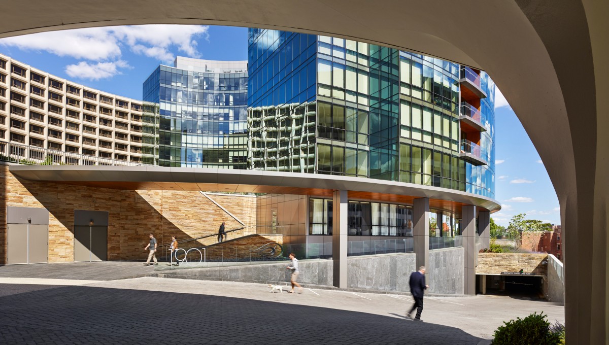 BBB's design for a bold, contemporary residential building adjacent to the landmark Washington Hilton near Dupont Circle takes cues from the hotel's distinctive curvilinear geometry.