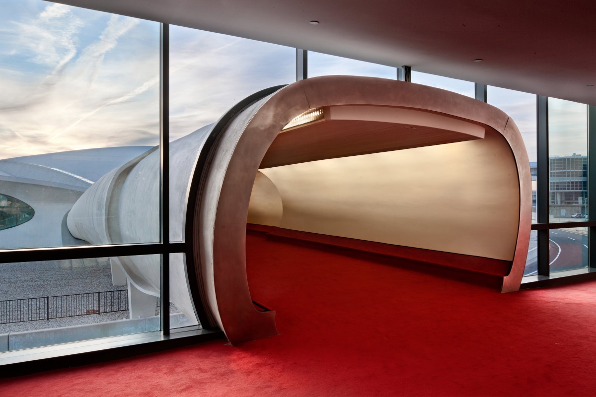 Designed by Eero Saarinen and opened in 1962, the TWA Flight Center is a symbol of both the expressive idealism of the 1960s and of Saarinen's innovative genius. Over time, the landmark terminal was subjected to a series of compromising alterations and additions and deferred crucial maintenance. In 2002, BBB embarked upon stabilization of the building, rendering it secure and weather-tight. Concurrently, a strategy for restoration and redevelopment was formulated based upon extensive research, interviews with surviving members of the original design team, and the analysis of archival materials. Central objectives of the restoration included removal of inappropriate exterior additions; repair of failing concrete and restoration of the historic landside entrance; and restoration of the predominant public areas of the Terminal, including the main entrance, the lower and upper lobbies and the flight tubes. BBB has restored the exterior of the building and completed the primary interior spaces, addressing many important life safety concerns such as smoke evacuation modeling, detection, annunciation, and egress. Returned to its finely-detailed glory, the building is prepared for reuse as a hotel, restaurant and meeting center complex.
