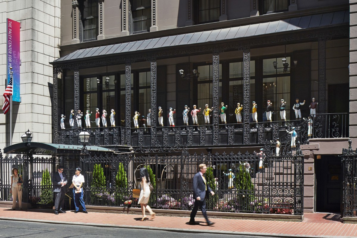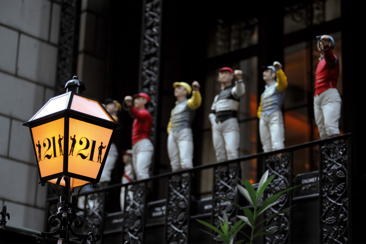 Located near the theatre district in midtown Manhattan, the '21' Club Restaurant's lower level lounge was renovated and repurposed by BBB for use as a cocktail lounge with a full bar. The space features new leather bar stools, upholstered tub lounge chairs, and an antiqued-gold patina mirror behind the bar that stylistically relates to the signature steps, jockeys, and iron metal work of the exterior. In addition to the lower level lounge, BBB transformed two private dining rooms on the first floor into a flexible catering and event space that is equipped to function for contemporary events. Audio/visual systems, flexible walls, new decorative lighting, and new coffered ceilings with traditional moldings were added, as well as structural elements to provide a more open floor plan and modified HVAC systems.
