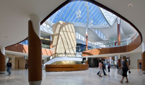 BBB’s master plan calls for portions of the site to be redeveloped for residential, hotel, and office use, and for streetscape improvements to make the area more welcoming and safer for pedestrians. The first phase expands and renovates two important public spaces—Town Square at the center of the complex, and Park Plaza at its north end—to establish infrastructure for the expanded programming that brings visitors to Ridge Hill. The plan also converts a vacant big-box space into a more flexible retail ecosystem by cutting a two-story, open-air “Paseo” into the building, topped by a translucent ETFE canopy, to accommodate a more diverse, sustainable tenant mix. Throughout, all architectural interventions are unified by a contemporary palette of metal and glass that distinguishes new from old and allows the brand identity of each tenant to shine through.