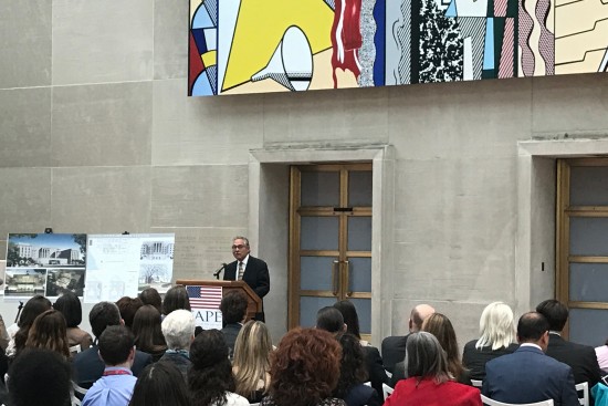 Partner Hany Hassan was invited to speak at a ceremony celebrating the installation of a replica of Roy Lichtenstein’s Greene Street Mural at the United States Diplomacy Center, a new museum and educational center designed by BBB for the State Department.