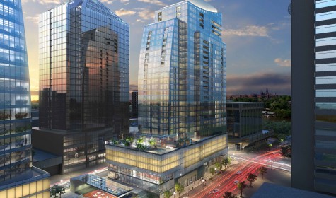 BBB has teamed with James Carpenter Design Associates to provide a sculptural entrance to the Central Place Office Tower. Made from glass, acrylic panels, and LED sheets, the assembly will create a diffuse lighting effect within the lobby and a distinct overall experience for visitors. The sculpture highlights the client’s dedication to promoting artists and public art; light sculptures by other artists are also being conceived for the public plaza between the two towers. The work of local artists will be displayed in the public interior spaces of both towers.
