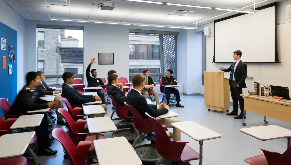 Drawing on the mission of the school and its community, BBB's objective was to create the best possible educational environment that conveys the core Jesuit values of inspired spirituality and intellectual excellence. The 10-year master plan for the historic Jesuit university-preparatory school, whose campus includes six buildings alongside the Church of Saint Francis Xavier, details a multi-phase campaign of capital improvements. Extensive programming interviews with Xavier administration, faculty, and students informed the master plan vision for the campus, which is grounded in the past but anticipates the school's ongoing development. As part of the master plan, BBB designed a 6-story expansion to the campus, Fernandez-Duminuco Hall, that addresses academic programmatic needs. The facility features a signature performance space with a de-mountable stage and large backstage that can be partitioned for separate use. Large acoustically-appropriate live-rooms, ensemble rooms, practice rooms, recording studio, and control rooms with dedicated music technology support the school's popular musical education program. The balance of the building houses classrooms of varied sizes—including a specially-designed STEAM (Science, Technology, Engineering, Arts, and Math) classroom complete with state-of-the-art technologies such as robotics equipment, tunable lighting, video production equipment, and 3D printers, as well as ergonomically-adjustable furniture. Throughout the addition, spaces are designed as open and flexible environments that foster collaboration and teamwork, critical to well-balanced student development.