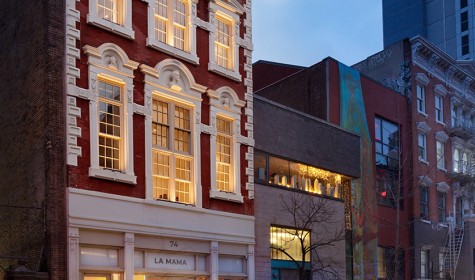 After nearly 50 years, the 74 East 4th Street home of La MaMa Experimental Theatre Club needed significant improvements to support the organization's growing international profile. Beyer Blinder Belle expanded patron and performer amenities by creating a new ADA-accessible lobby, all-gender bathrooms, and expanded dressing areas at ground level. By lowering the first-floor ceiling, the second-floor performance venue, "The Club," gained higher ceilings, floating floors for acoustic isolation, and space for state-of-the-art theater equipment. Diversified events and community programs are supported by a new multipurpose studio, outdoor terrace, and staff offices on the third and fourth floors, and by new broadcast technology that can stream any event worldwide.