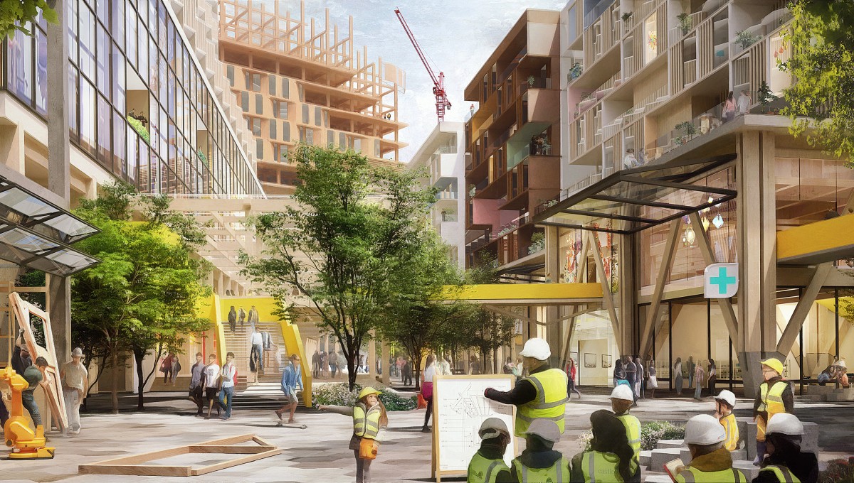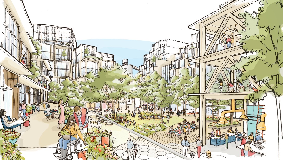 Planning for Quayside and the IDEA District integrates multiple innovations that together achieve benefits not possible in conventional developments. Some examples include flexible streets designed to favor pedestrians and enable new mobility technologies including shared autonomous vehicles (AV's), heated bike lanes, modular dynamic pavement, outdoor comfort systems to increase the time spent outdoors, flexible ground floor "stoa" spaces to accommodate a wide range of uses beyond traditional retail, a thermal grid district energy system, and underground package delivery and pneumatic waste networks. Quayside would also be the first neighborhood built entirely of mass timber construction, which is far more sustainable than concrete or steel and would help catalyze a new industry for Ontario.