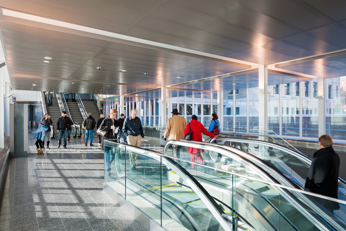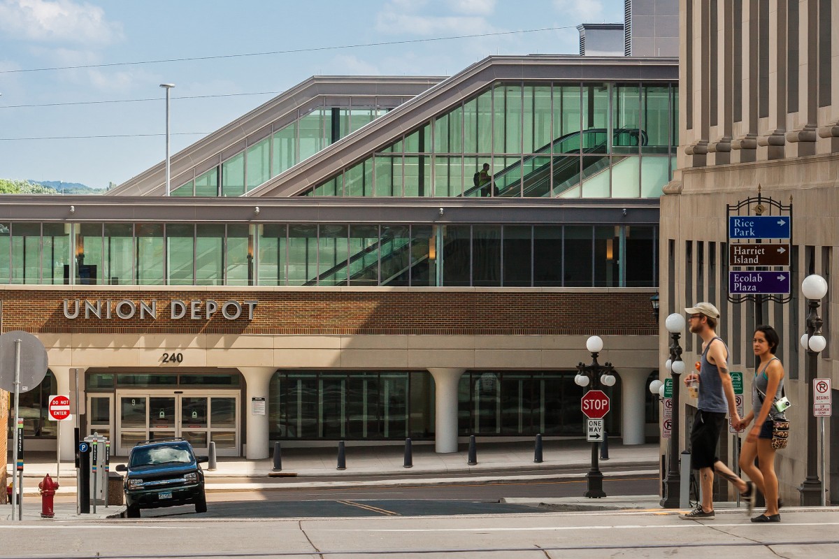 Union Depot is an historic Beaux Arts railroad station located on the banks of the Mississippi River in downtown St. Paul. Once the railroad hub of the Twin Cities and known as the "Gateway to the West," the building was shuttered in 1971 and closed to the public for more than four decades. As the lead design and preservation architect, BBB worked with an interdisciplinary design-build team to rehabilitate the site into a vibrant, multi-modal transportation hub. The renovated station includes tenant and retail space, grand interior event spaces, parking facilities, and a public pedestrian plaza. In addition to historic restoration work, BBB designed new steel-and-glass vertical circulation towers to move passengers from the waiting room to the trains and buses, new train platforms and canopies, and a major new entrance for vehicular drop-off and Amtrak baggage functions.