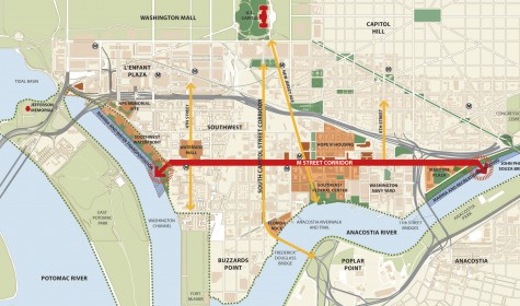 The Vision for Growing an Inclusive City focuses on three major themes: Successful Neighborhoods, Access to Education and Employment, and Physically Connecting the Whole City. The Vision is oriented not to the National Mall and federal core, but to the surrounding neighborhoods, Downtown, and underutilized assets such as the Anacostia River and Fort Circle Parks. It offers an alternative view of the District, highlighting the extraordinary richness and potential that lies beyond the well-known monuments and memorials. The Vision was debated by over 3,000 people at the Citizens' Summit held in the Washington Convention Center, with the final plan adopted by the DC City Council. The elements of the plan continue to be implemented incrementally since it was adopted and have contributed to the revitalization of many previously undeveloped or economically depressed areas of the District.
