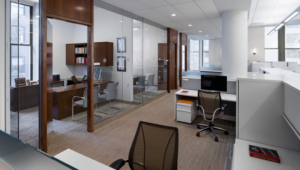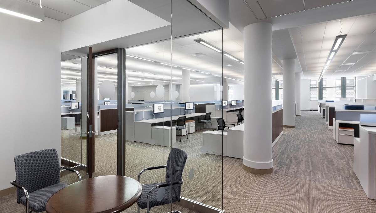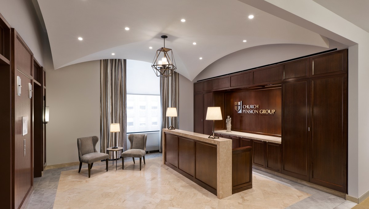BBB provided planning and interior design services for the Church Pension Group (CPG), an investment armature of the Episcopal Church. After an initial programming phase, BBB prepared several test-fit studies for different properties. A turn-of-the-century landmark building on Fifth Avenue was ultimately selected, and the CPG headquarters were consolidated and relocated to 150,000 SF on five contiguous floors plus a penthouse. The project includes completely new base building MEP infrastructure and structural modifications to the floor slabs in order to improve upon previously unusable floor configurations, as well as the design of the interior spaces and the specification of all furniture and fixtures. Staff members now have efficient open work spaces of the same size, which promote collaboration and teaming, and has improved CPG's efficiency while solving capital costs and future change management budgets. The majority of the open work spaces are located along the well-lighted perimeter of the floor plates, with areas that are situated at the core taking advantage of natural light streaming in from 10 foot high windows.