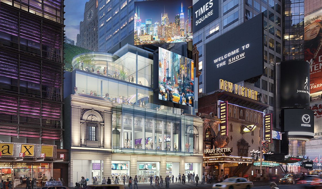 The reborn Times Square Theater is projected to be completed in two years. With the uncertainty of who will move into the space, the designs are bound to shift slightly depending on the tenant’s needs, but one thing’s for sure: Come 2020, the Time’s Square Theater will no longer be the ugly kid on the block.