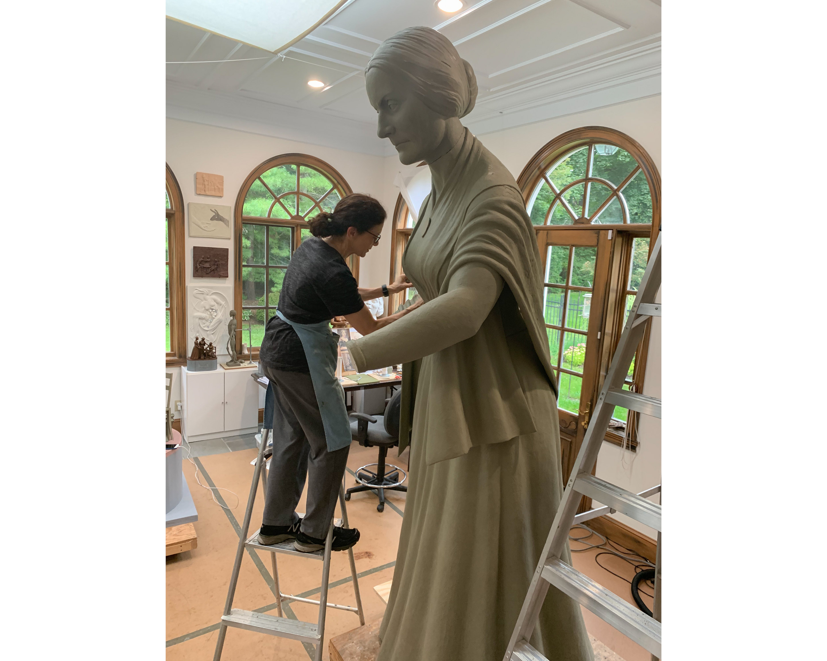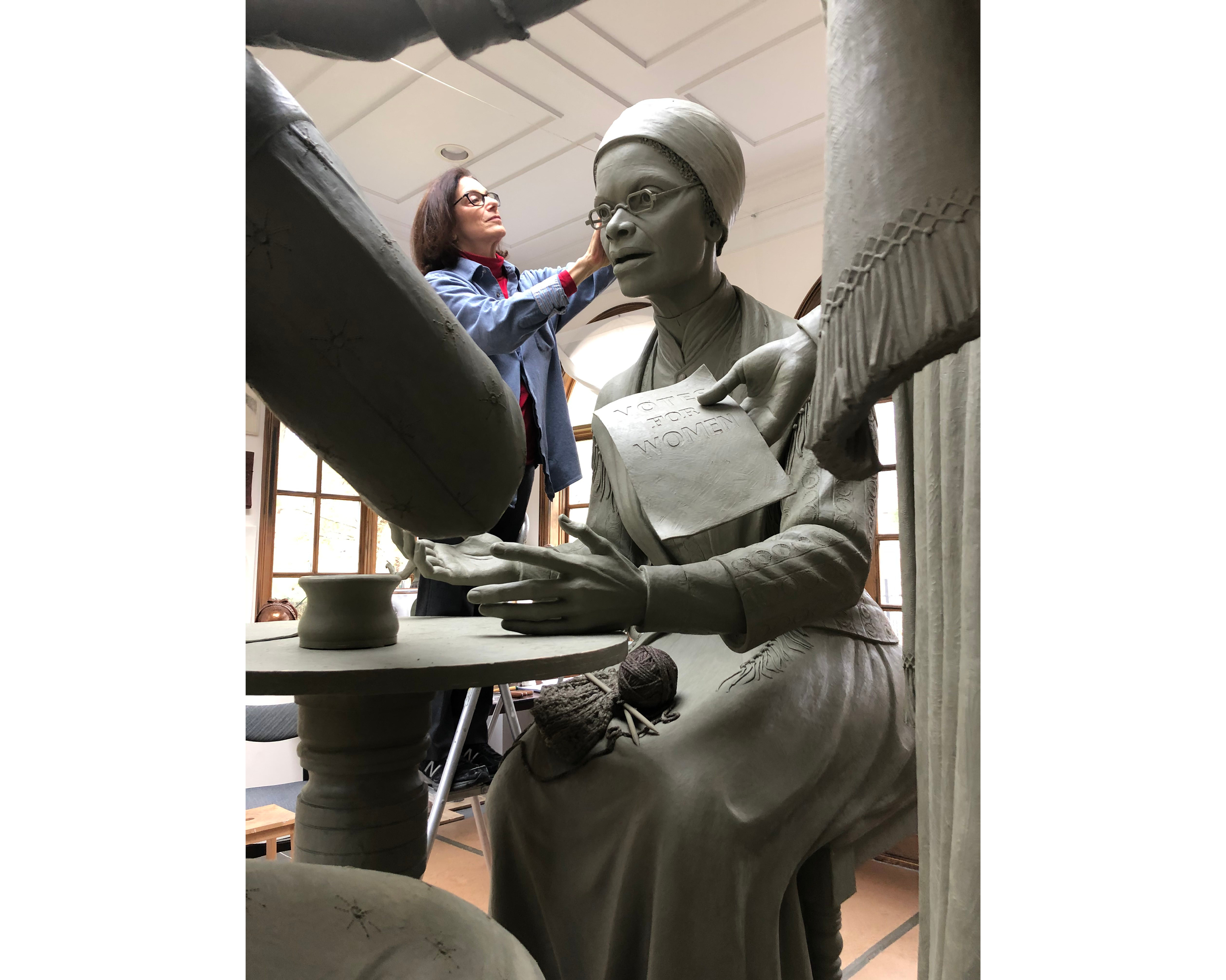 Listen to an interview with sculptor Meredith Bergmann on WBUR's Here & Now Podcast New Suffrage Statue Will Be Central Park's Only Monument To Depict Real Women, By Robin Young