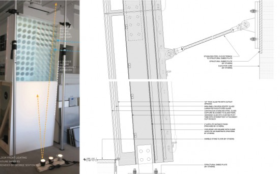 BBB has teamed with James Carpenter Design Associates to provide a sculptural entrance to the Central Place Office Tower. Made from glass, acrylic panels, and LED sheets, the assembly will create a diffuse lighting effect within the lobby and a distinct overall experience for visitors. The sculpture highlights the client’s dedication to promoting artists and public art; light sculptures by other artists are also being conceived for the public plaza between the two towers. The work of local artists will be displayed in the public interior spaces of both towers.