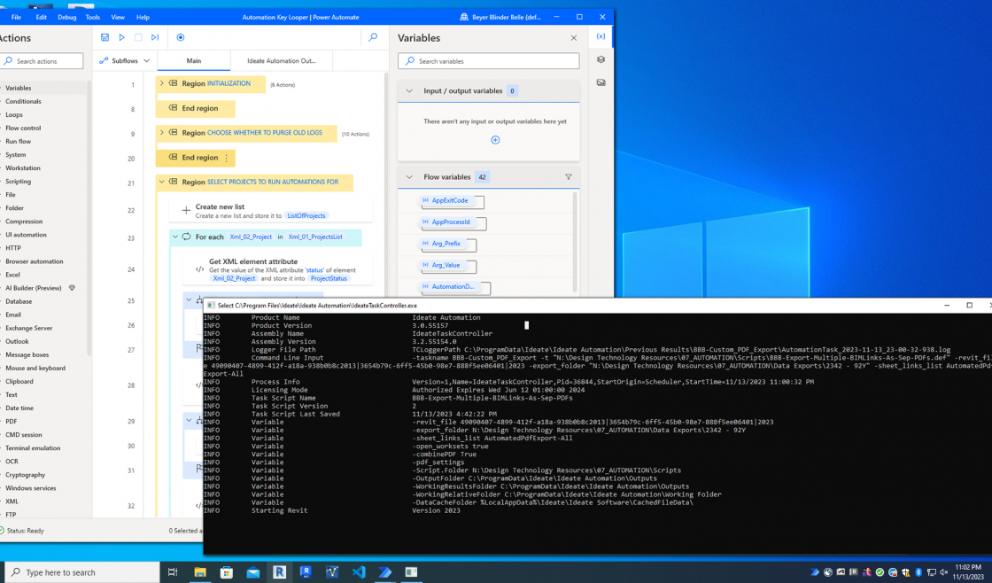 To fully integrate Ideate Automation into BBB’s data-centered processes, BBB developed a workflow using Microsoft Power Automate to capture front-end Ideate Automation command line arguments and send them to the backend to run on a specific schedule. This allows for additional tasks to happen before or after Ideate Automation’s data export, beyond the Revit environment. “It is incredible how well Ideate Automation integrates into a larger automation pipeline. The flexibility of Ideate Automation’s task engine and its ability to work independently of the front-end UI is a huge plus for us,” said Matthew.