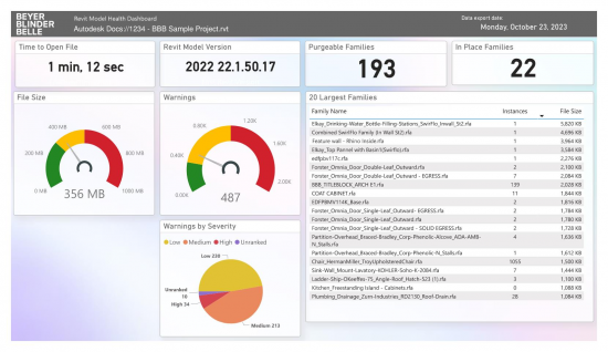 As DCT began offering overnight PDF exports to teams across the company, they heard that overwhelmingly people preferred to get one PDF per type of drawing series (e.g., one for architectural drawings, one for demolition drawings, and one for landscape drawings). “Although Ideate Automation does not come with a script that can structure PDFs in that particular way, it comes with a lot of editable examples. We were able to study the many scripts as references and then we pulled in the pieces we needed and created a hybrid script that performs perfectly,” said Matthew Breau, Design Technology Specialist at BBB.2. Model Health Reports